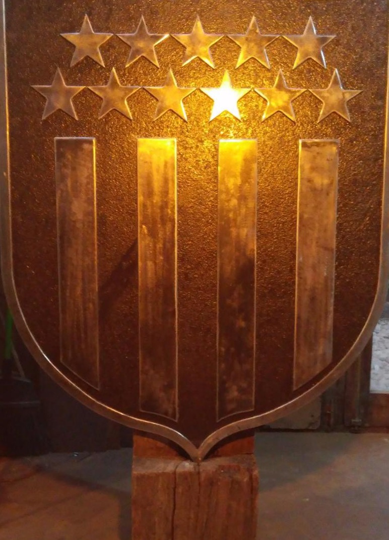 Escudo hecho en hierro, entregado como obsequio al club, para que se instale en el estadio Campeón del Siglo, que es ahí dónde se encuentra. Realizado por Gustavo con la colaboración de treinta hinchas que realizaron un aporte económico, éstos dejaron su firma en la parte posterior del escudo.